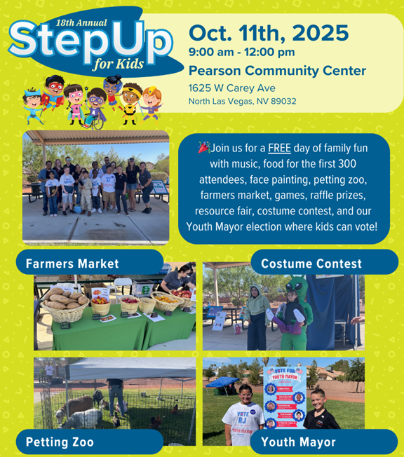 ¡Únete a nosotros para un evento GRATIS de diversión familiar con música, comida para los primeros 300 asistentes, pintura facial, zoológico de mascotas, mercado de agricultores, juegos, premios en la rifa, feria de recursos, concurso de disfraces y nuestra elección de Alcalde Juvenil donde los niños pueden votar!